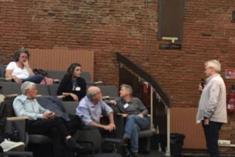 L’après midi a été consacré à la réflexion sur l’animation des réunions publiques, obligatoires dans la procédure de consultation parallélisée. Quatre comédiens de la compagnie « tombés du ciel’ » ont animé des mises en situations selon le principe du théâtre forum. 5 de nos collègues ont ainsi pu se tester en situation de réunion d’ouverture ou de fin de consultation.